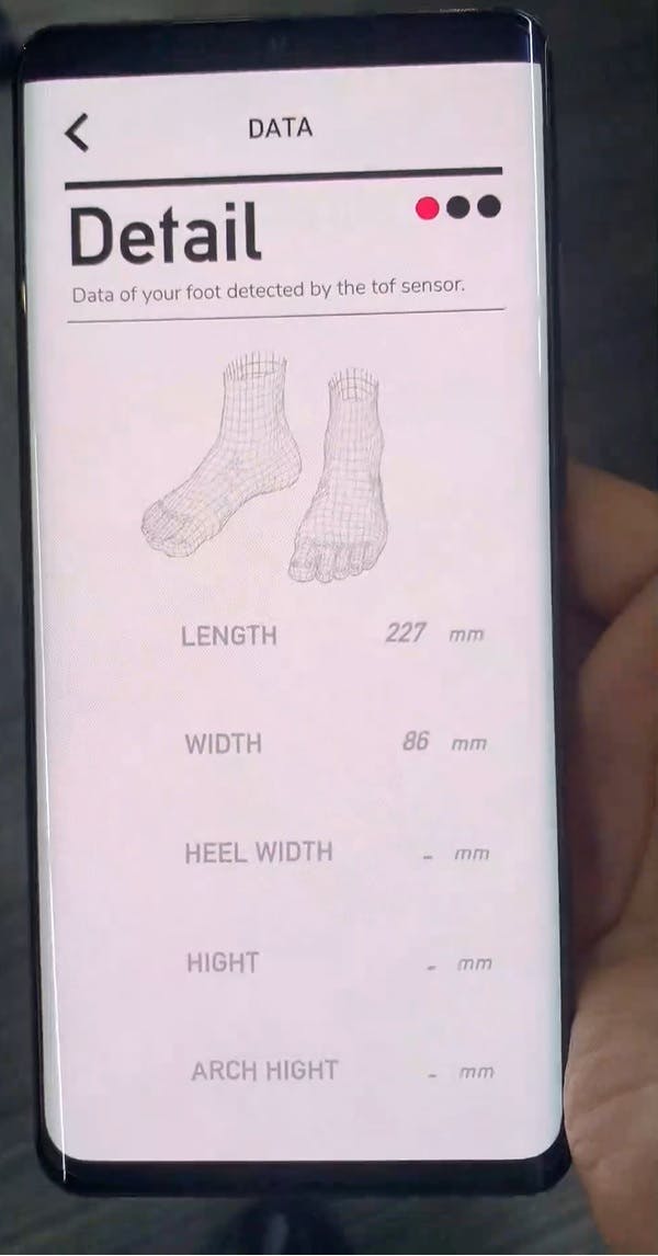 JD.com’s AR Shoes Try-on feature displays measurements for a user’s foot after scanning it. Source: JD.com Corporate Blog